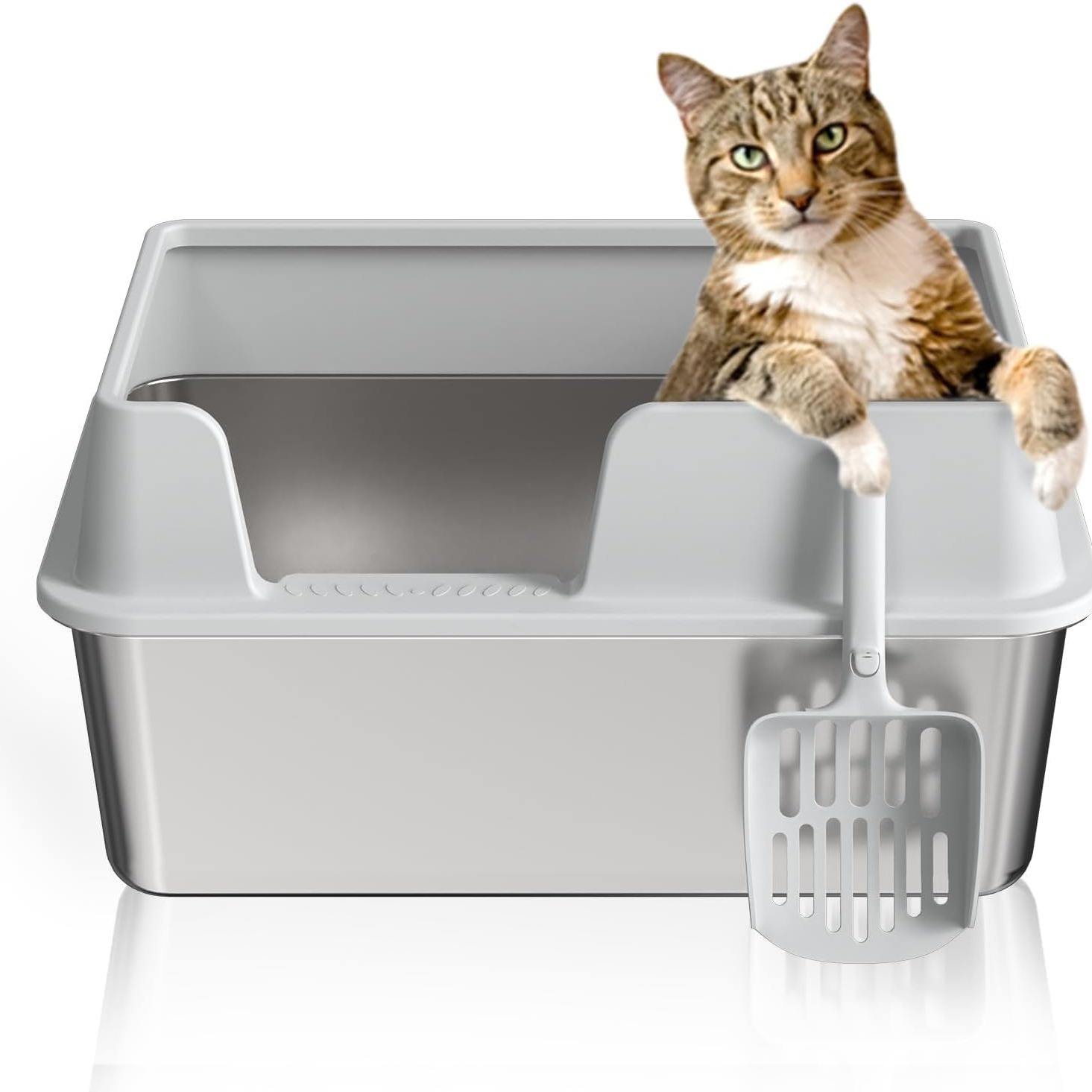 Easy-to-clean stainless steel cat litter box for multi-cat households and commercial use