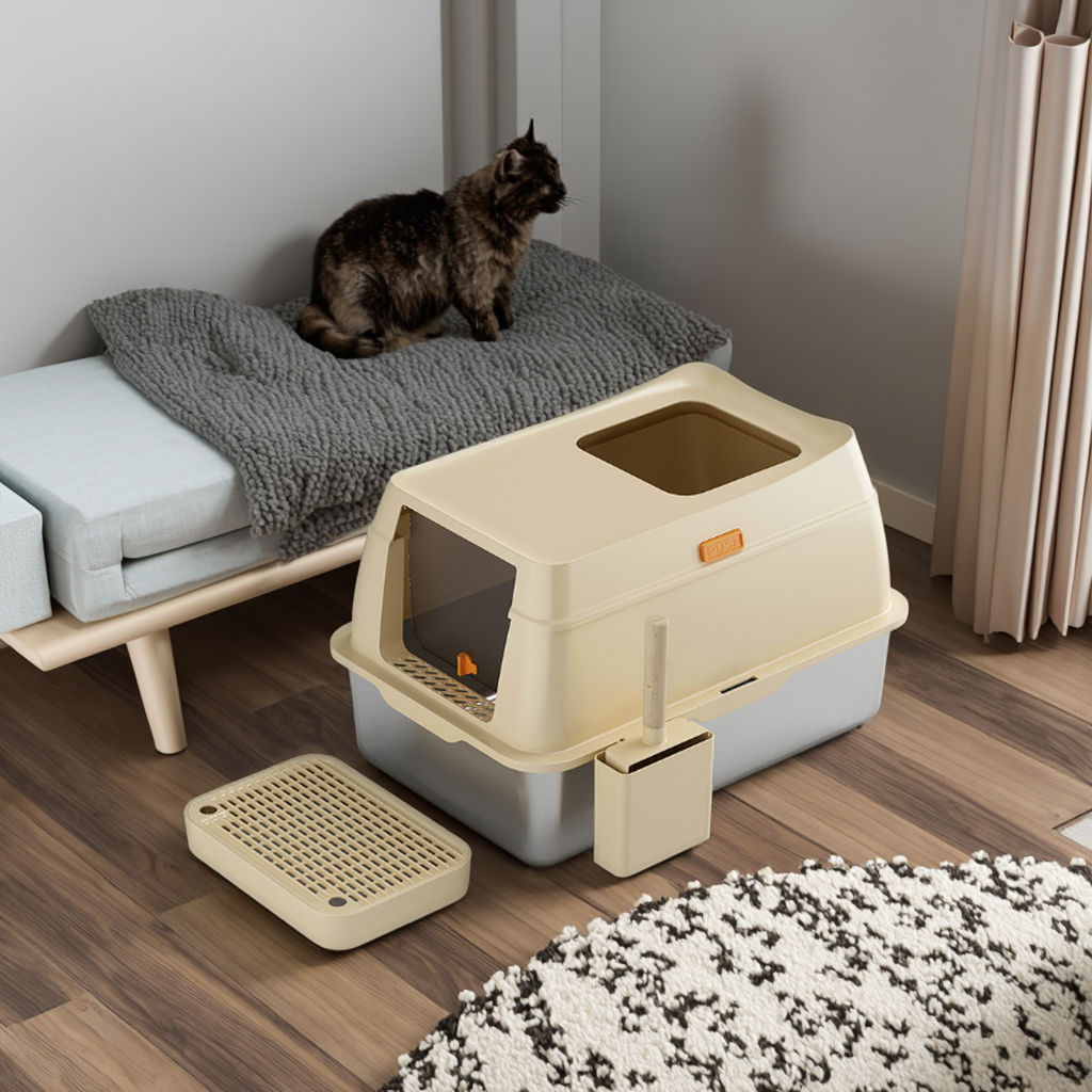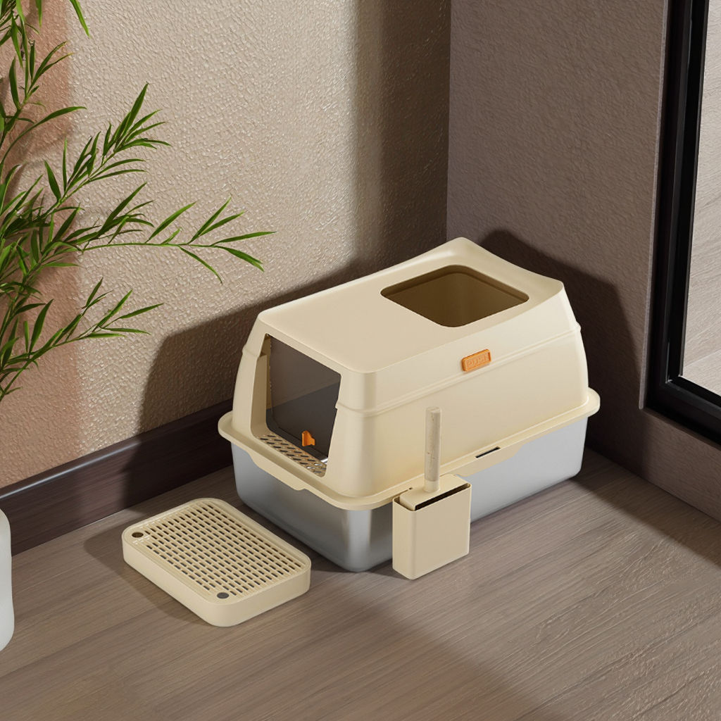 OEM factory wholesale of the smallest design stainless steel cat litter box, easy-to-clean urinal guard, portable side entrance accessories