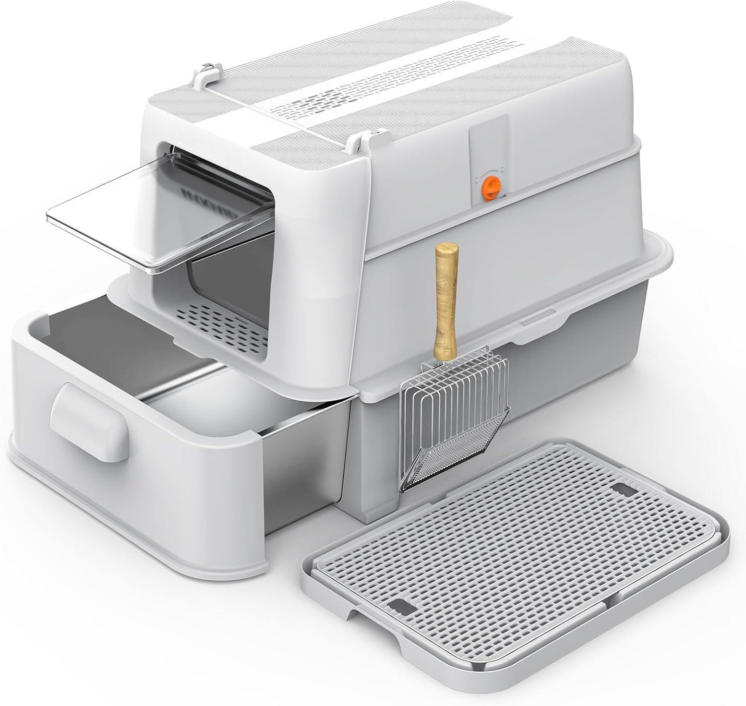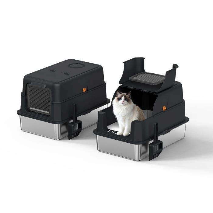 OEM indoor cat litter pot, washable and detachable plastic cat toilet, open semi-closed anti-splash design, easy to clean pet cat litter